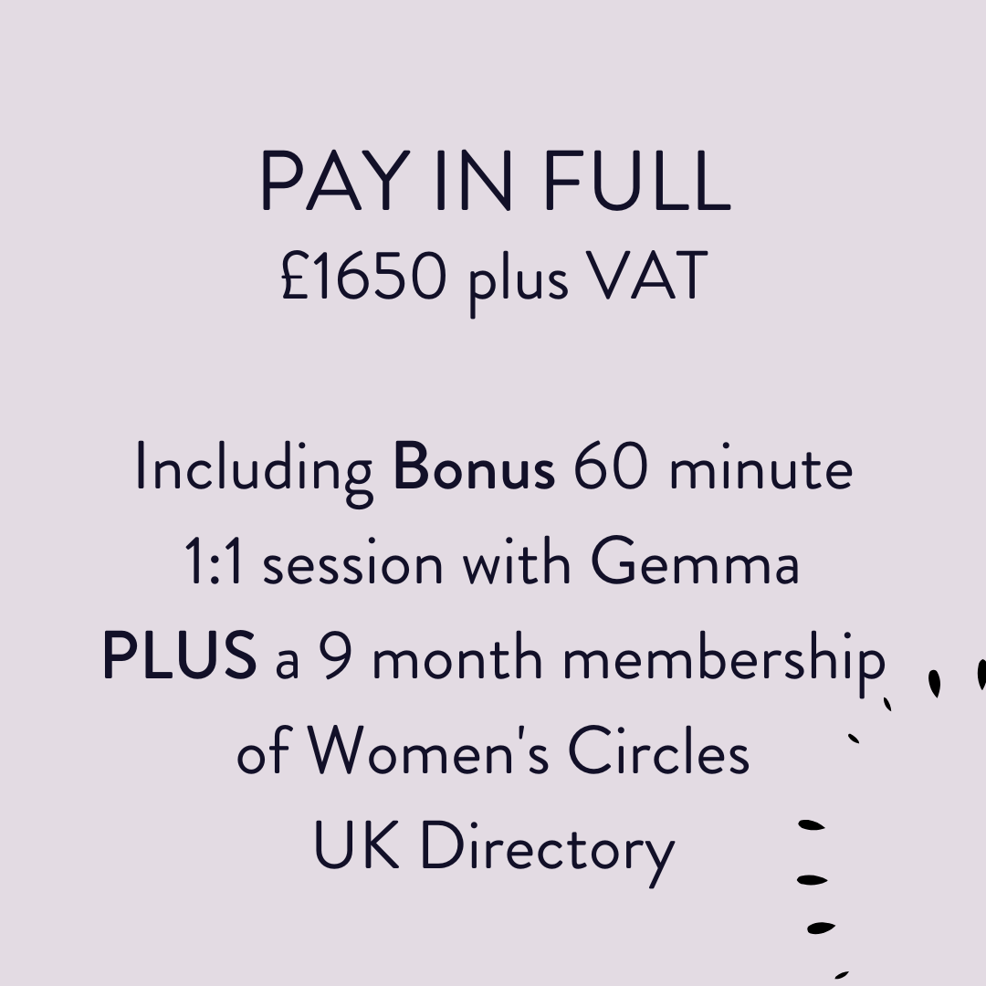 Where possible, we offer flexible payment plan options so if you feel called to this training but the listed payment plans don’t work for you, please follow your instinct to explore doing the training, book a call and mention this in your booking form; we will do our best to work out an option that makes this feel more accessible.